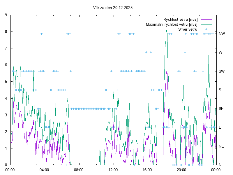 Směr a rychlost větru