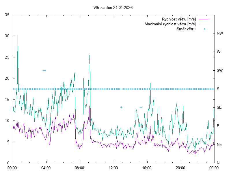 Směr a rychlost větru