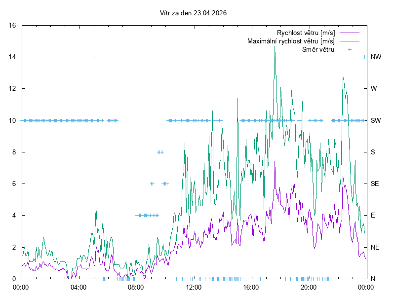 Směr a rychlost větru